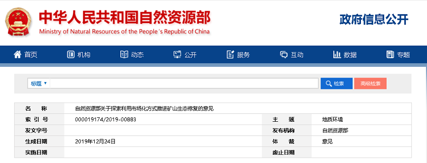 导读:自然资源部近日印发《关于探索利用市场化方式推进矿山生态修复的意见》,将矿山生态功能修复和后续资源开发利用、产业发展统筹考虑,明确了一系列激励政策,动员全社会力量,加入国土空间生态保护修复中来。